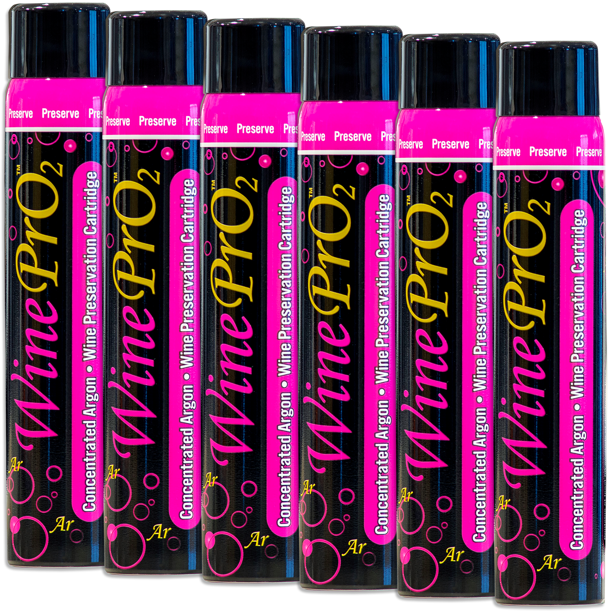 The Preservation Refill Set contains six (6) Argon cartridges for use with the WinePrO2® System. Each cartridge contains enough Argon gas to preserve up to 60 opened 750ml bottles.  MADE & FILLED IN THE USA